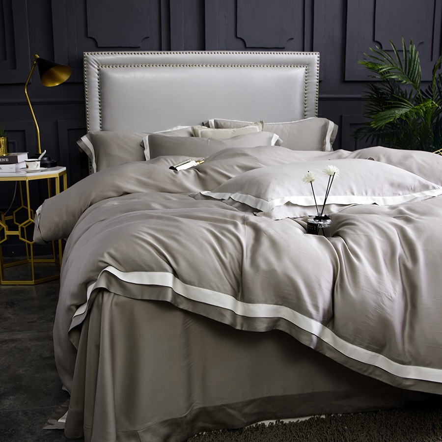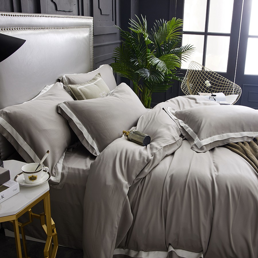 床上用品 純棉四件套 蕾絲工藝 60天絲純色工藝系列 星灰銀