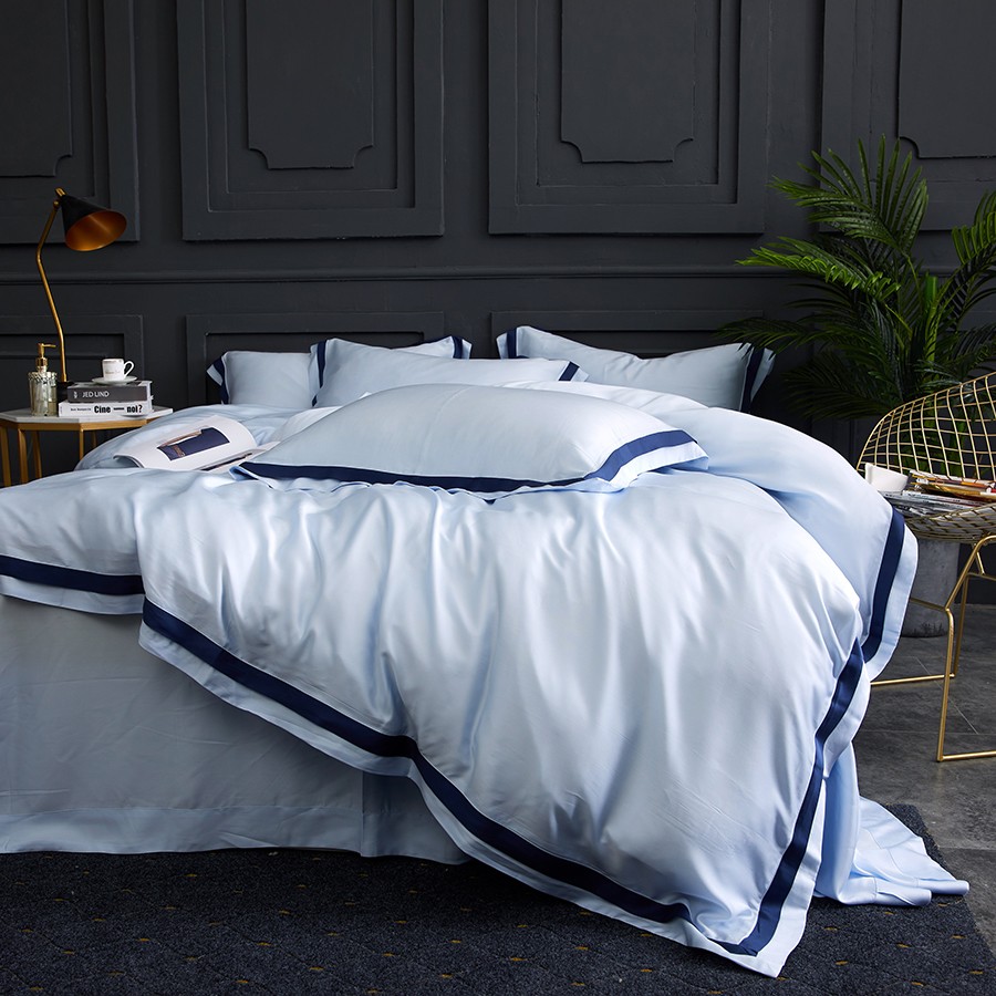 床上用品 純棉四件套 蕾絲工藝 60天絲純色工藝系列 星藍(lán)